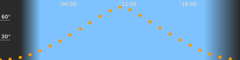 | Höchster Stand (Kulmination) | 12:04 Uhr (h = 79,1°) |