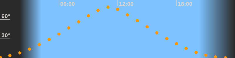 | Höchster Stand (Kulmination) | 11:05 Uhr (h = 79,1°) |