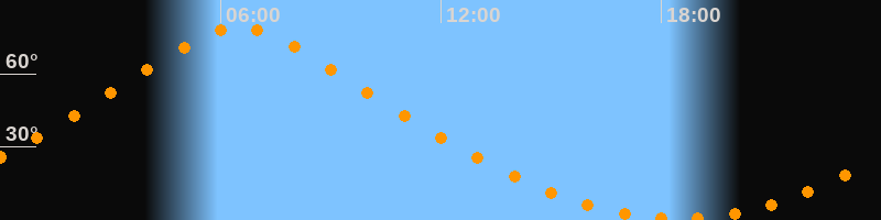 | Höchster Stand (Kulmination) | 06:30 Uhr (h = 79,1°) |