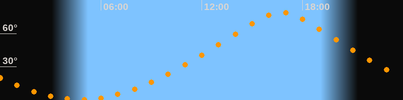 | Höchster Stand (Kulmination) | 16:44 Uhr (h = 79,1°) |