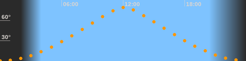 | Höchster Stand (Kulmination) | 12:05 Uhr (h = 79,1°) |
