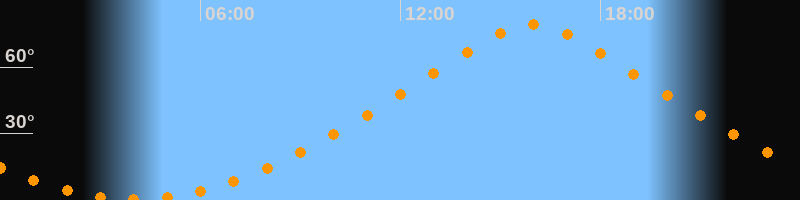 | Höchster Stand (Kulmination) | 15:59 Uhr (h = 79,1°) |