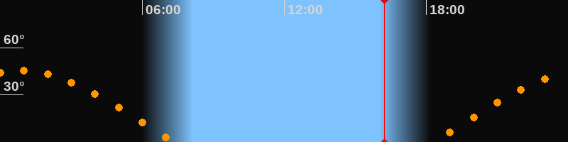 | Aufgang | 18:15 Uhr im Osten (αAz = 79,8°) |
