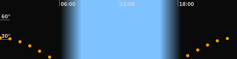 | Aufgang | 18:21 Uhr im Osten (αAz = 99,9°) |