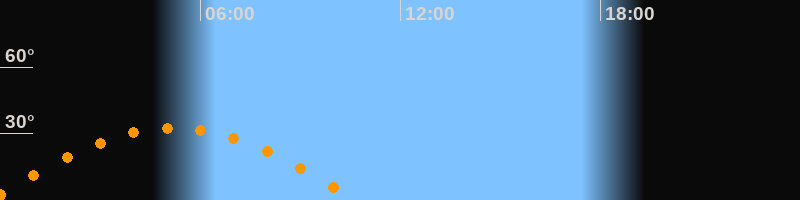 | Höchster Stand (Kulmination) | 05:12 Uhr (h = 32,6°) |