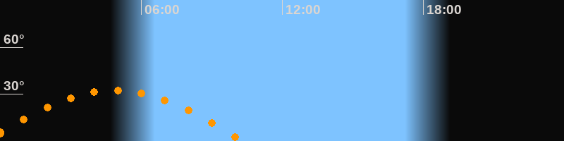 | Untergang | 10:22 Uhr im Westen (αAz = 260,1°) |