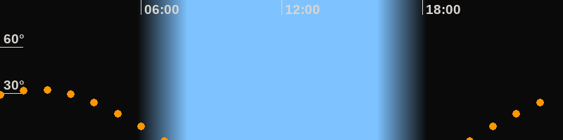 | Höchster Stand (Kulmination) | 01:32 Uhr (h = 32,6°) |