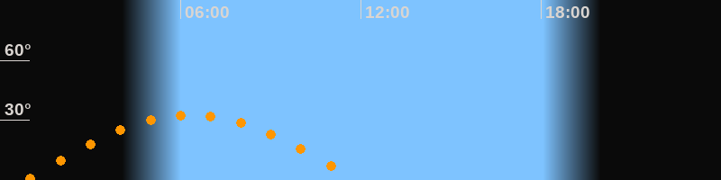 | Höchster Stand (Kulmination) | 06:20 Uhr (h = 32,6°) |