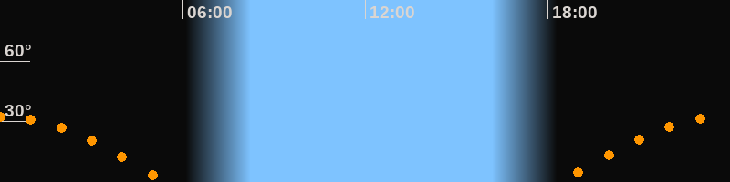 | Aufgang | 18:25 Uhr im Osten (αAz = 99,9°) |
