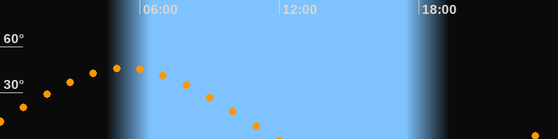 | Aufgang | 22:41 Uhr im Osten (αAz = 78,5°) |