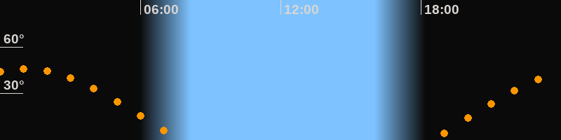| Höchster Stand (Kulmination) | 01:06 Uhr (h = 46,1°) |