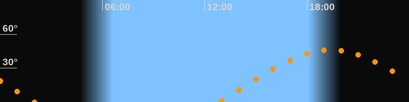 | Aufgang | 12:48 Uhr im Osten (αAz = 78,5°) |
