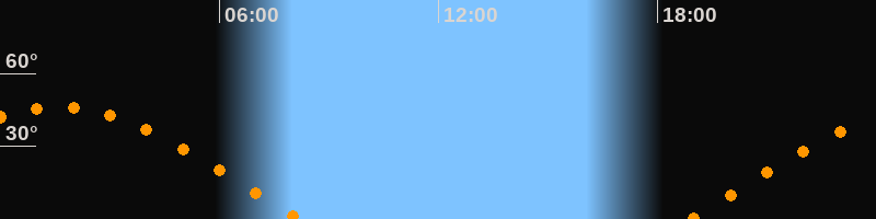 | Aufgang | 18:54 Uhr im Osten (αAz = 78,5°) |