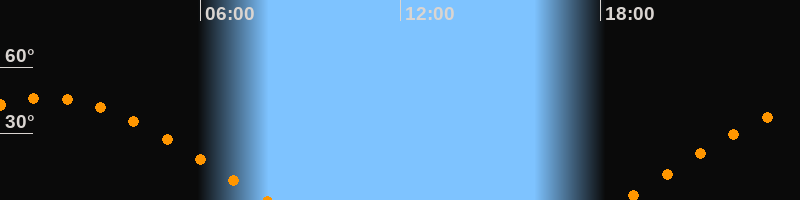 | Aufgang | 18:43 Uhr im Osten (αAz = 78,5°) |