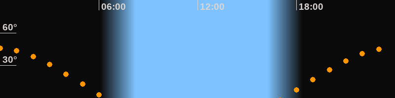 | Untergang | 06:25 Uhr im Westen (αAz = 281,5°) |