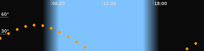 | Untergang | 10:46 Uhr im Westen (αAz = 281,5°) |