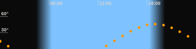 | Aufgang | 12:20 Uhr im Osten (αAz = 78,5°) |