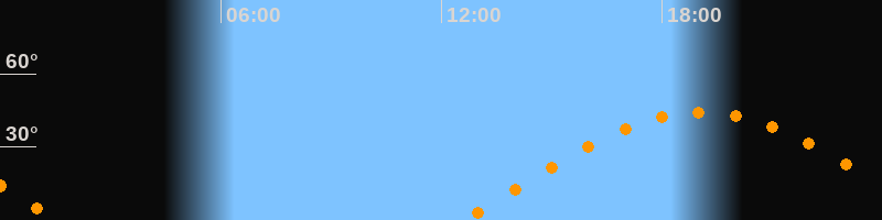 Höchster Stand (Kulmination)19:04 Uhr (h = 44,3°)