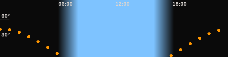 Höchster Stand (Kulmination)00:08 Uhr (h = 44,3°)