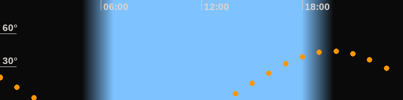 Höchster Stand (Kulmination)19:45 Uhr (h = 44,3°)