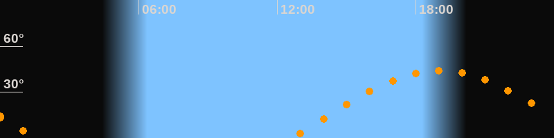 Höchster Stand (Kulmination)19:02 Uhr (h = 44,3°)