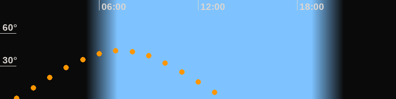 Höchster Stand (Kulmination)07:16 Uhr (h = 44,3°)