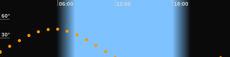 Höchster Stand (Kulmination)05:34 Uhr (h = 44,3°)