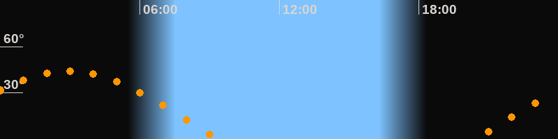 Höchster Stand (Kulmination)02:56 Uhr (h = 44,3°)