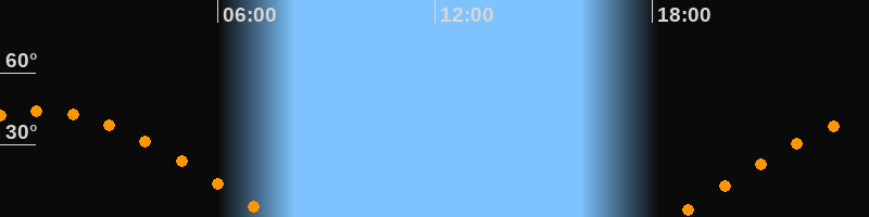 Höchster Stand (Kulmination)01:06 Uhr (h = 44,3°)