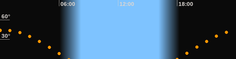 Höchster Stand (Kulmination)00:26 Uhr (h = 44,3°)