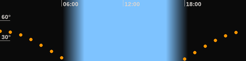 Höchster Stand (Kulmination)00:03 Uhr (h = 44,3°)