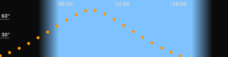 | Höchster Stand (Kulmination) | 09:32 Uhr (h = 74,5°) |