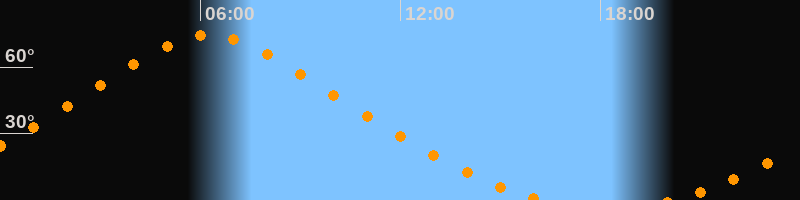 | Höchster Stand (Kulmination) | 06:15 Uhr (h = 74,5°) |