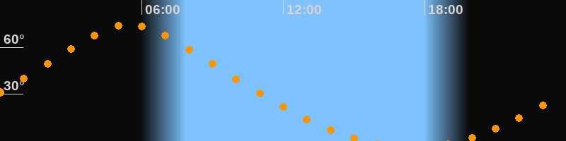 | Höchster Stand (Kulmination) | 05:28 Uhr (h = 74,5°) |