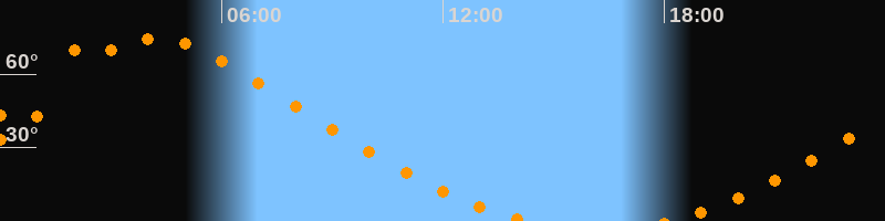 | Untergang | 14:20 Uhr im Norden (αAz = 337,5°) |