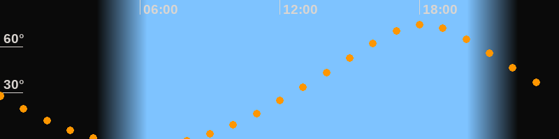 | Höchster Stand (Kulmination) | 18:09 Uhr (h = 74,5°) |
