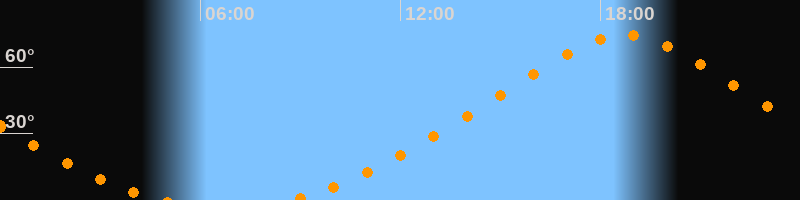 | Höchster Stand (Kulmination) | 18:44 Uhr (h = 74,5°) |