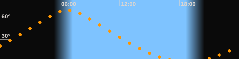 | Höchster Stand (Kulmination) | 06:46 Uhr (h = 74,5°) |