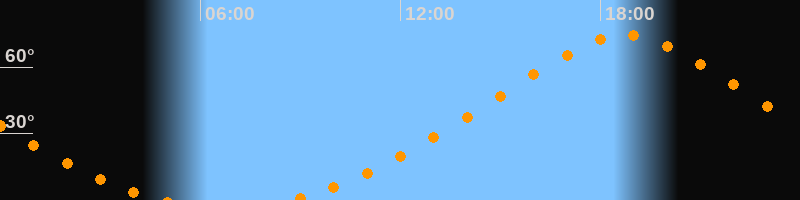 | Höchster Stand (Kulmination) | 18:45 Uhr (h = 74,5°) |