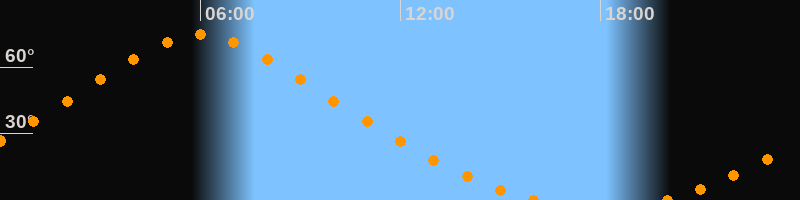 | Höchster Stand (Kulmination) | 06:00 Uhr (h = 74,5°) |