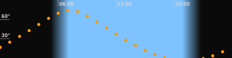 | Höchster Stand (Kulmination) | 07:11 Uhr (h = 74,5°) |
