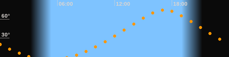 | Höchster Stand (Kulmination) | 17:13 Uhr (h = 74,5°) |