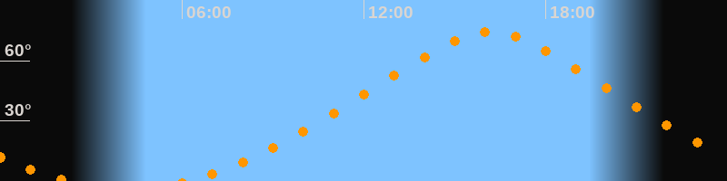 | Höchster Stand (Kulmination) | 16:10 Uhr (h = 74,5°) |