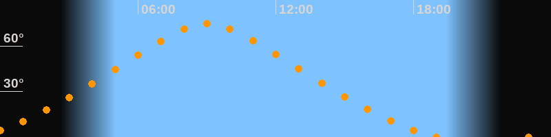 | Höchster Stand (Kulmination) | 09:01 Uhr (h = 74,5°) |