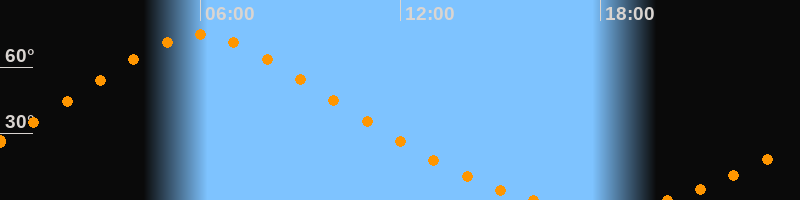 | Höchster Stand (Kulmination) | 06:00 Uhr (h = 74,5°) |