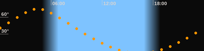 | Aufgang | 18:16 Uhr im Nordosten (αAz = 22,5°) |