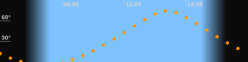 | Höchster Stand (Kulmination) | 16:11 Uhr (h = 74,5°) |