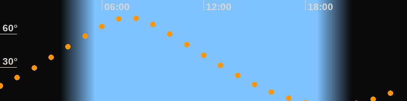 | Höchster Stand (Kulmination) | 07:36 Uhr (h = 74,5°) |