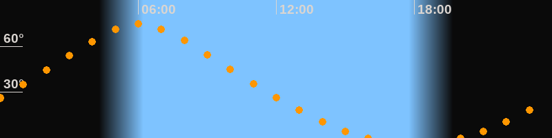 | Höchster Stand (Kulmination) | 06:01 Uhr (h = 74,5°) |
