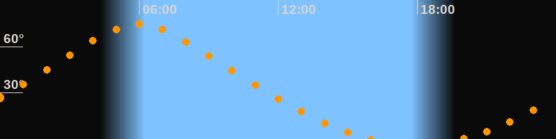 | Höchster Stand (Kulmination) | 05:58 Uhr (h = 74,5°) |